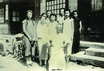 1943年,叶嘉莹(二排右一)和辅仁大学同学与老师顾随(前排坐者)合影